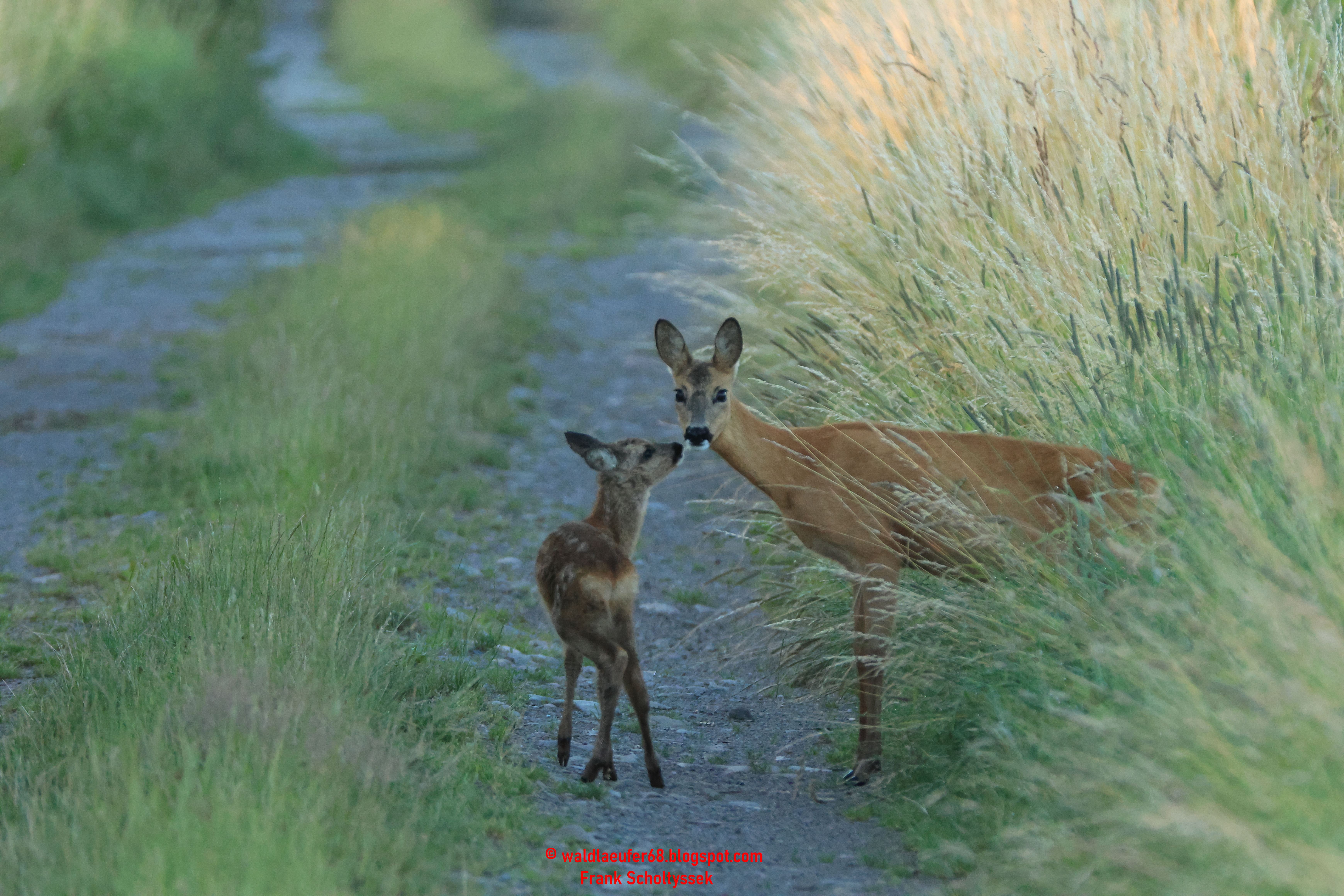 Wir waren schon einige Zeit unterwegs, aber hatten leider noch nichts gesehen. Ein sehr ruhiger Morgen, so etwas hat man öfter, also Sachen zusammen packen und weiter ziehen... nach einigen Metern kommen wir auf eine abgemähte Wiese und sehen von weitem nur den Kopf vom Reh hinter dem hohen Gras. Die Sonne im Rücken pirschten wir uns immer näher heran und beobachten das Reh wie es gemütlich über die Wiese schlendert. Ylva und ich sitzen im Gras, das Reh konnte uns sehen aber blieb ruhig, sehr gut für uns.. toller Moment...